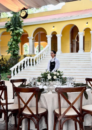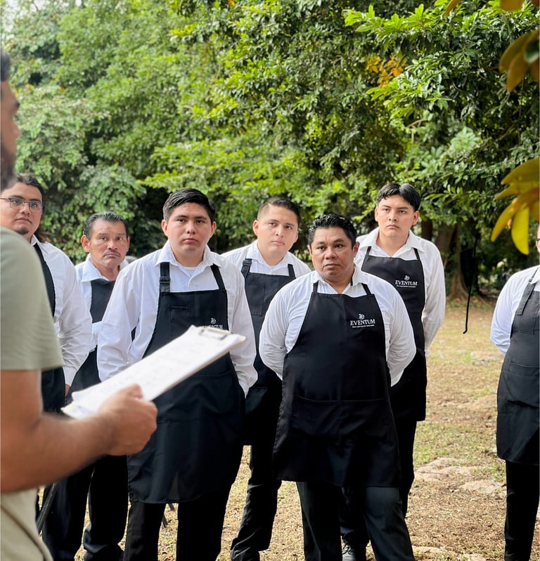 Contamos con personal capacitado y con experiencia en eventos sociales y corporativos. Nuestro equipo trabaja de forma coordinada para ofrecer un servicio impecable, atención respetuosa y ejecución puntual en cada celebración.
